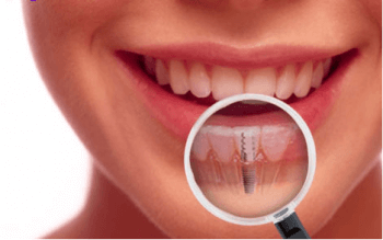 An implant is an artificial root made from titanium and over time integrates which becomes part of the jawbone. An implant can hold a single replacement dental crown, bridge or a denture depending on how many teeth are missing.